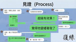 小謝在LINE上興奮地回報:「老師,超級有效果!突然覺得他變纏著我了!」